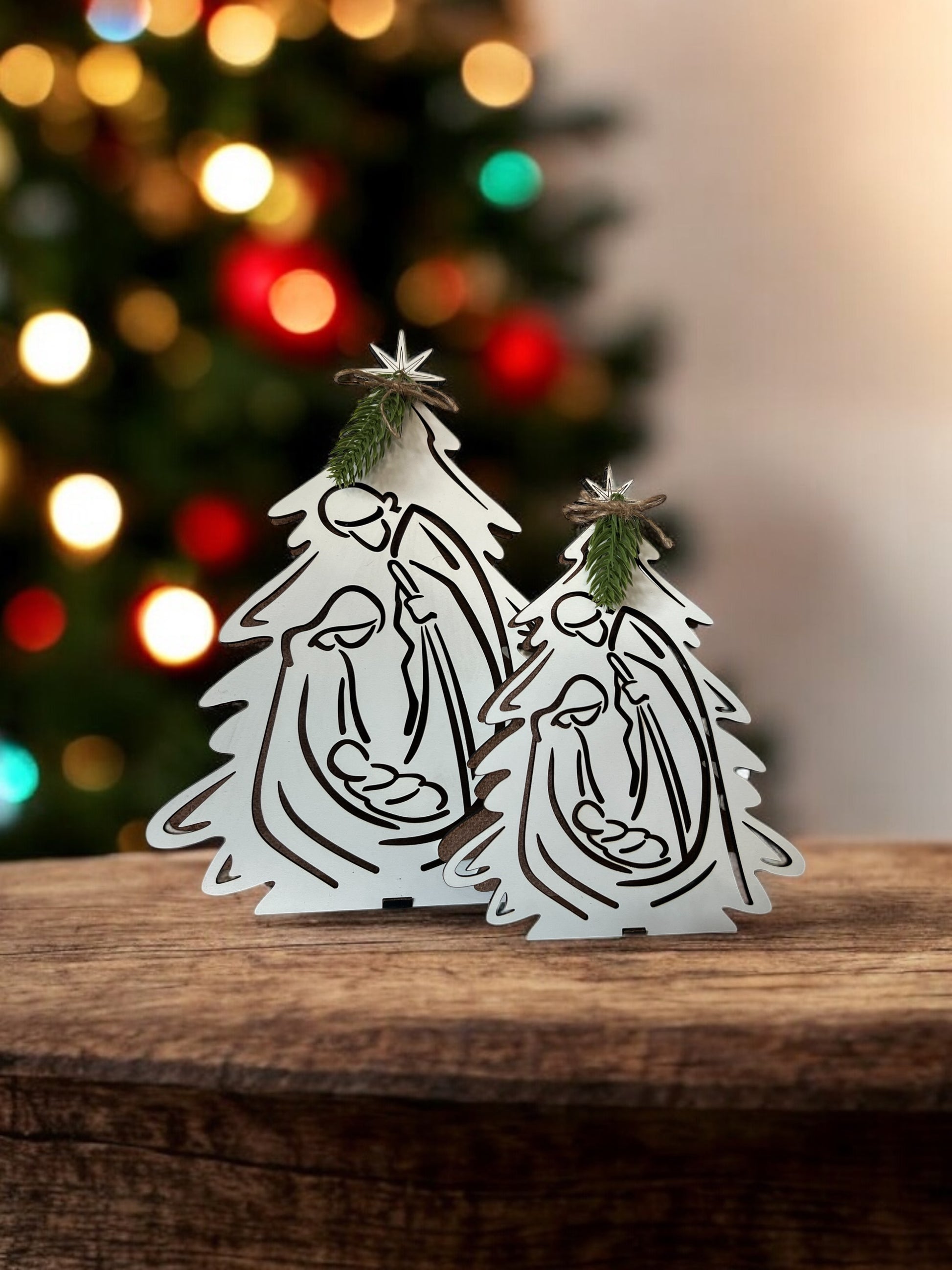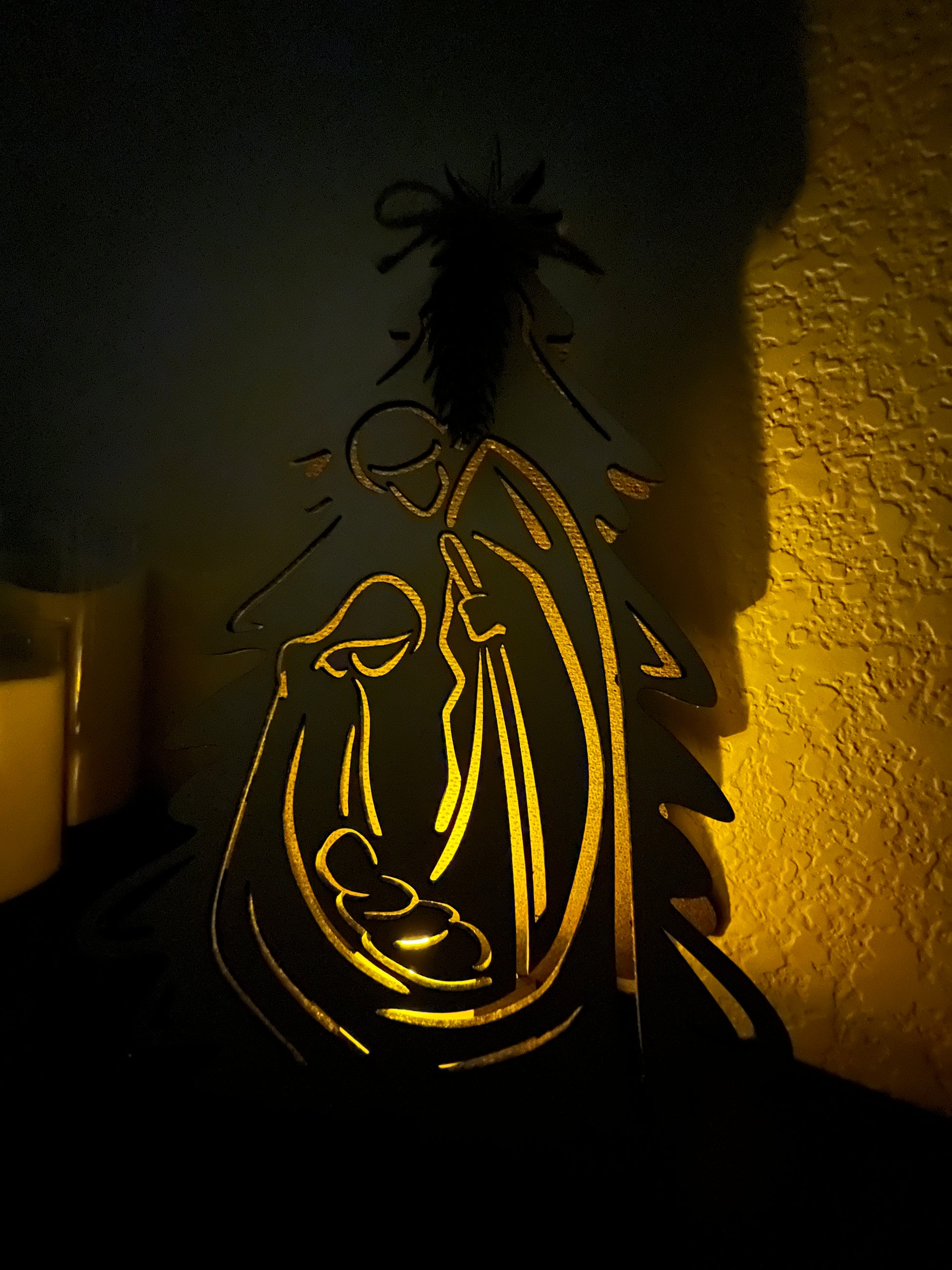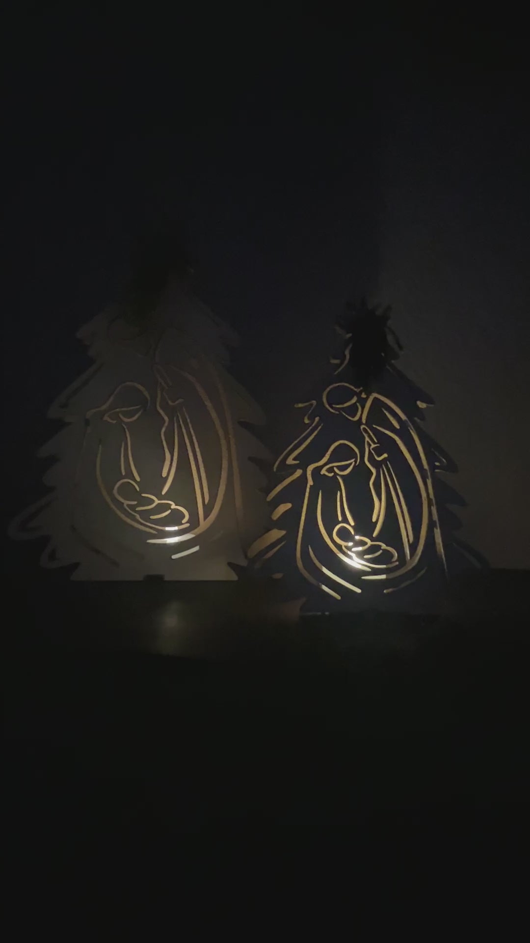 This beautifully crafted wood nativity scene features intricate details and is enhanced by a soft, warm glow from a battery-operated candle. The gentle illumination creates a serene ambiance, making it an ideal centerpiece for mantels, tables, or windowsills.