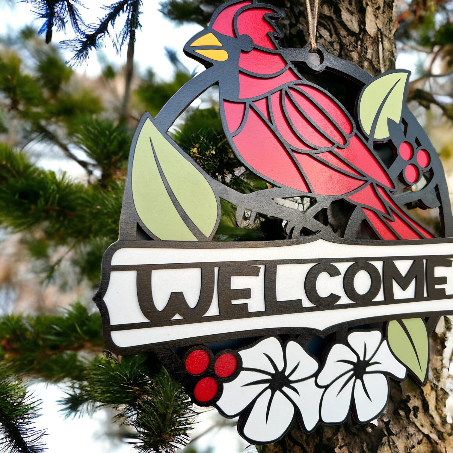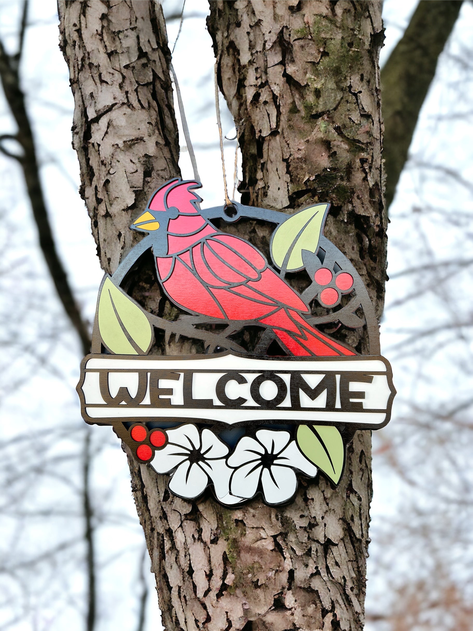 Enhance your home's entrance with our exquisite wood door sign adorned with a vibrant red cardinal. Crafted for a touch of nature-inspired charm, this 'welcome' sign brings a warm and inviting atmosphere to your doorstep.