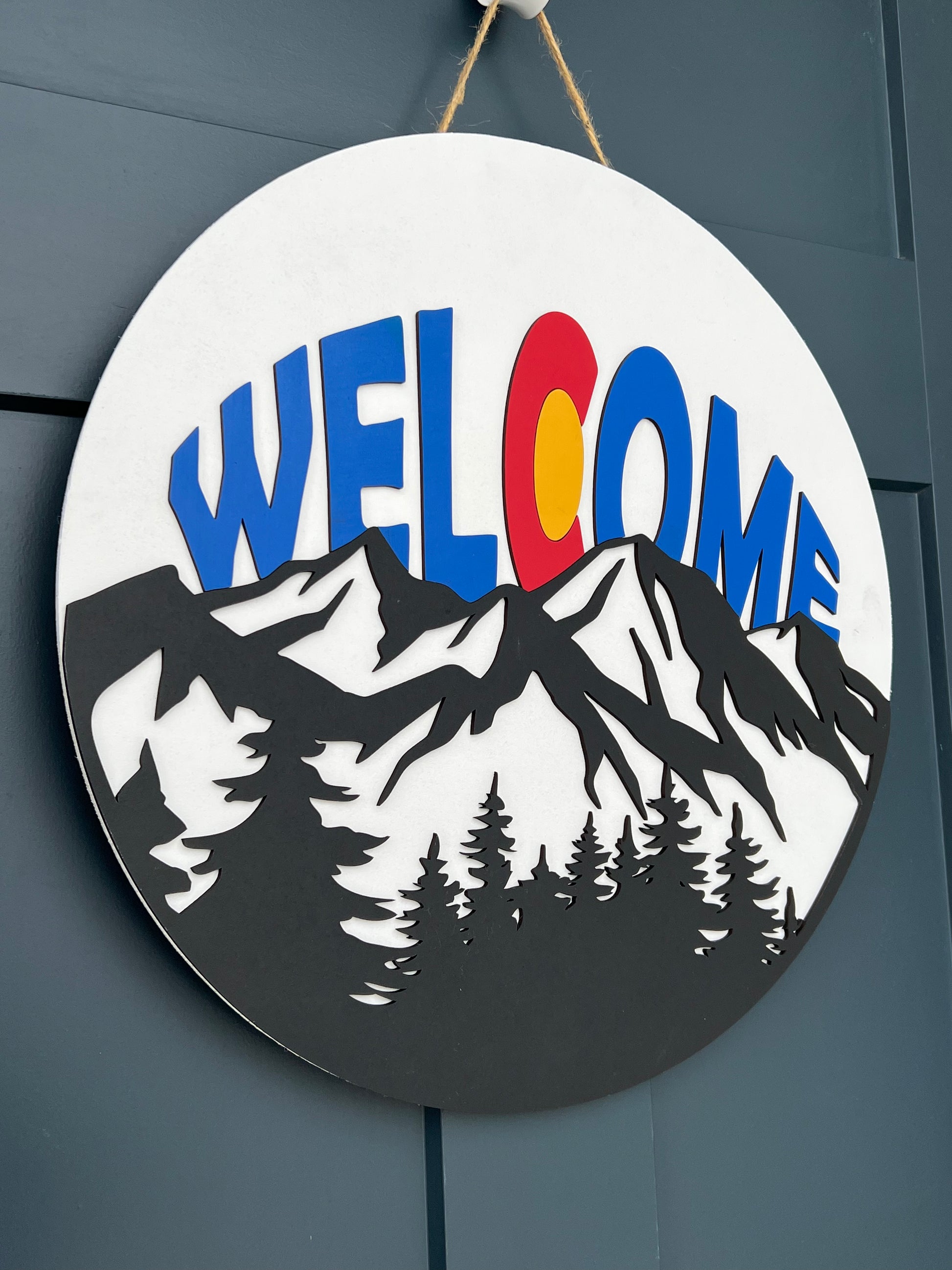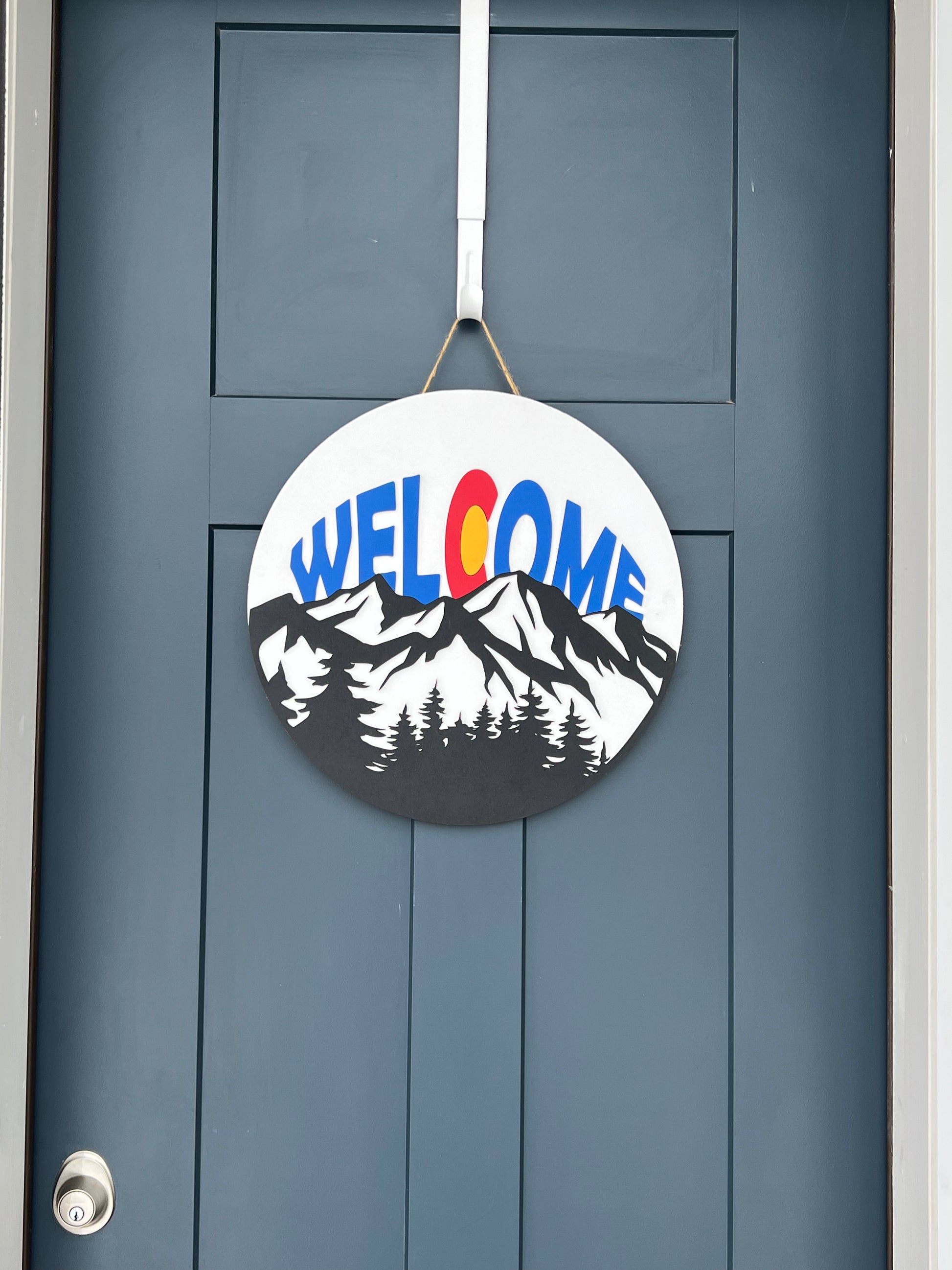Show off your love for Colorado with this handmade Welcome sign. This wood door hanger is essential for any front door in Colorado.