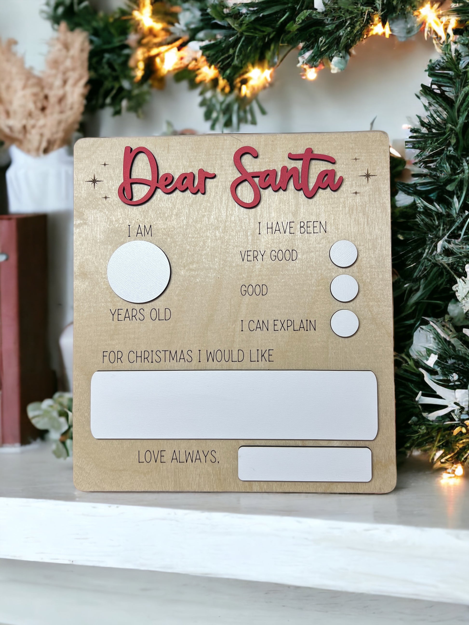 Let your little ones' creativity shine by personalizing this sign with their heartfelt message to Santa. Use dry erase markers for easy wipe-on and wipe-off editing, ensuring that wishes stay up to date.