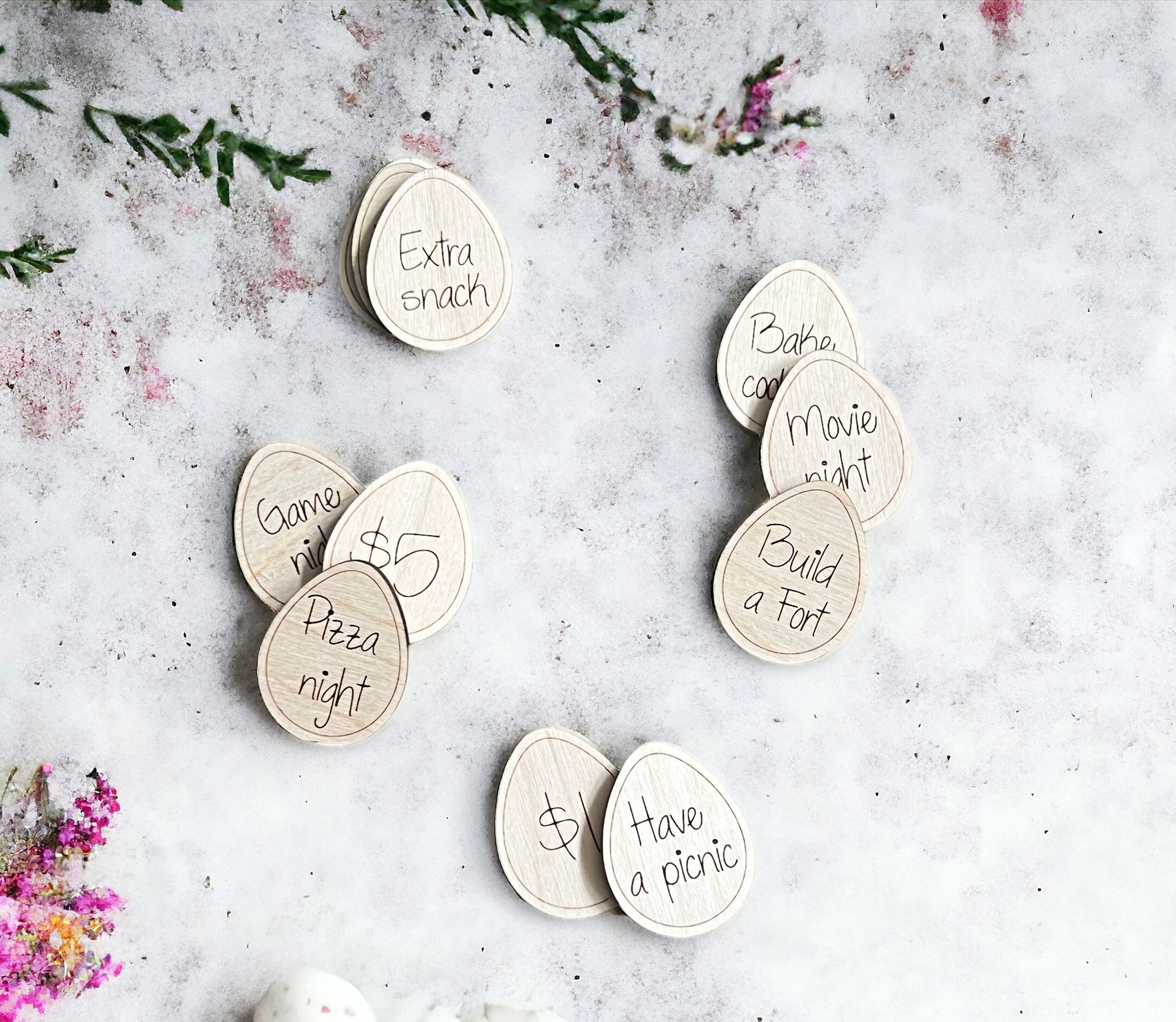 Kids will love “cashing in” these wood tokens for a special treat/activity. They make a great alternative to candy and can be used over and over.