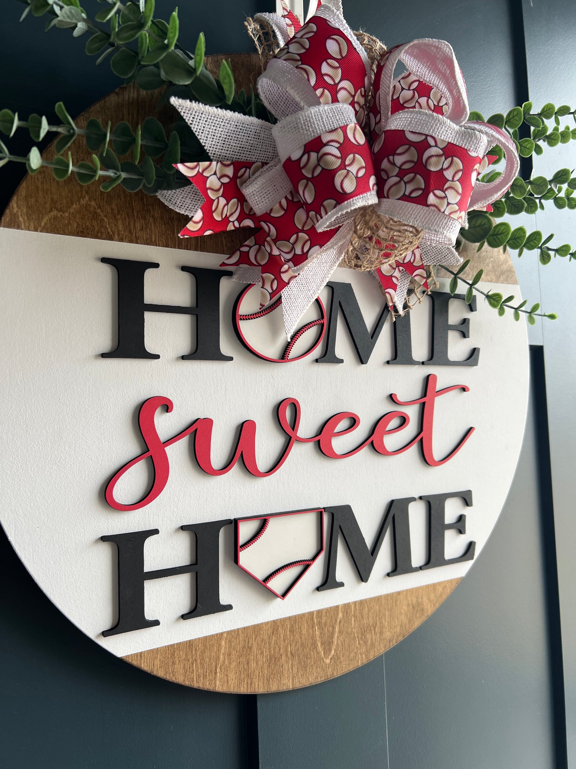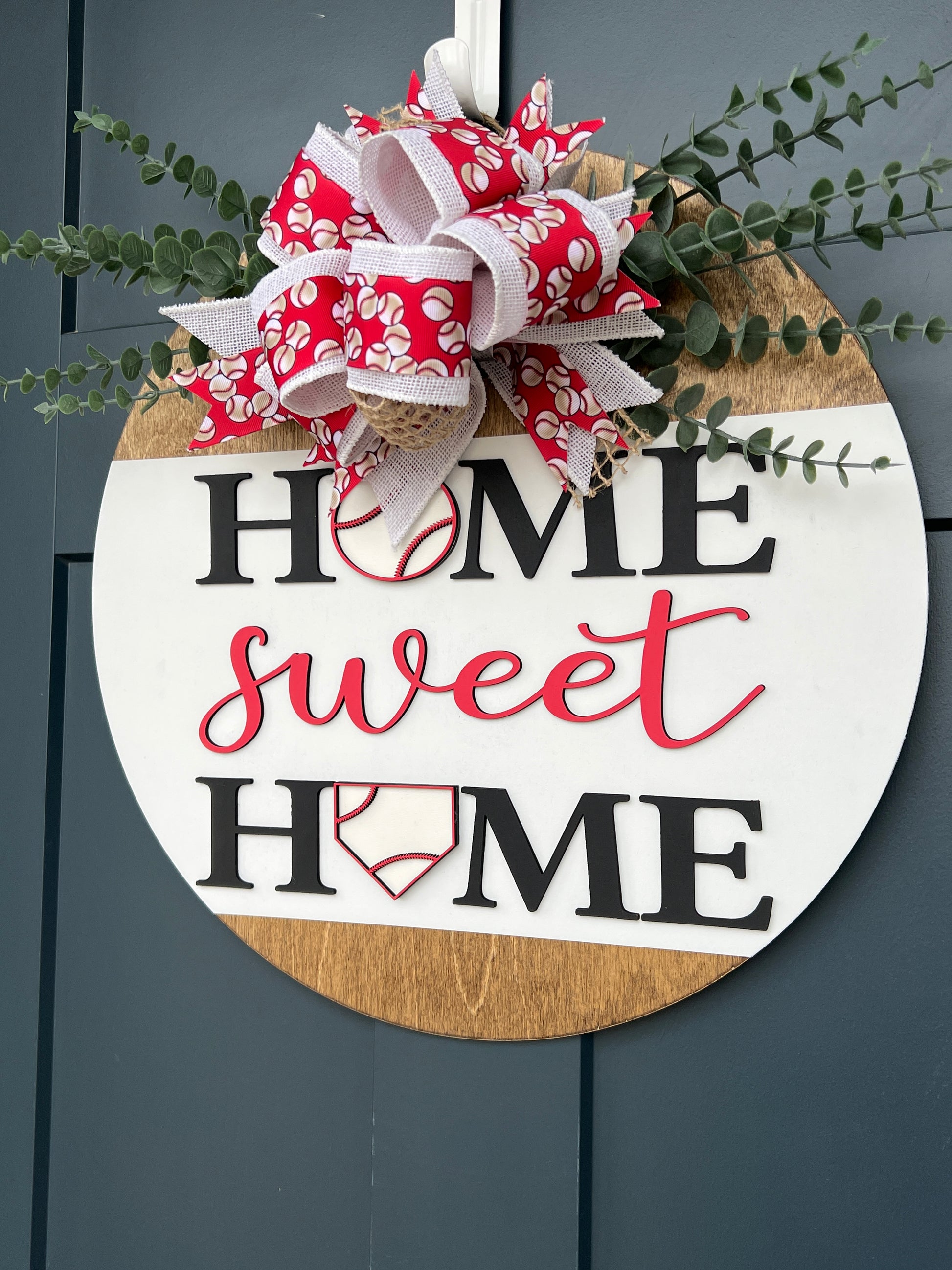 Show your love for baseball with this fun "Home Sweet Home' door sign.