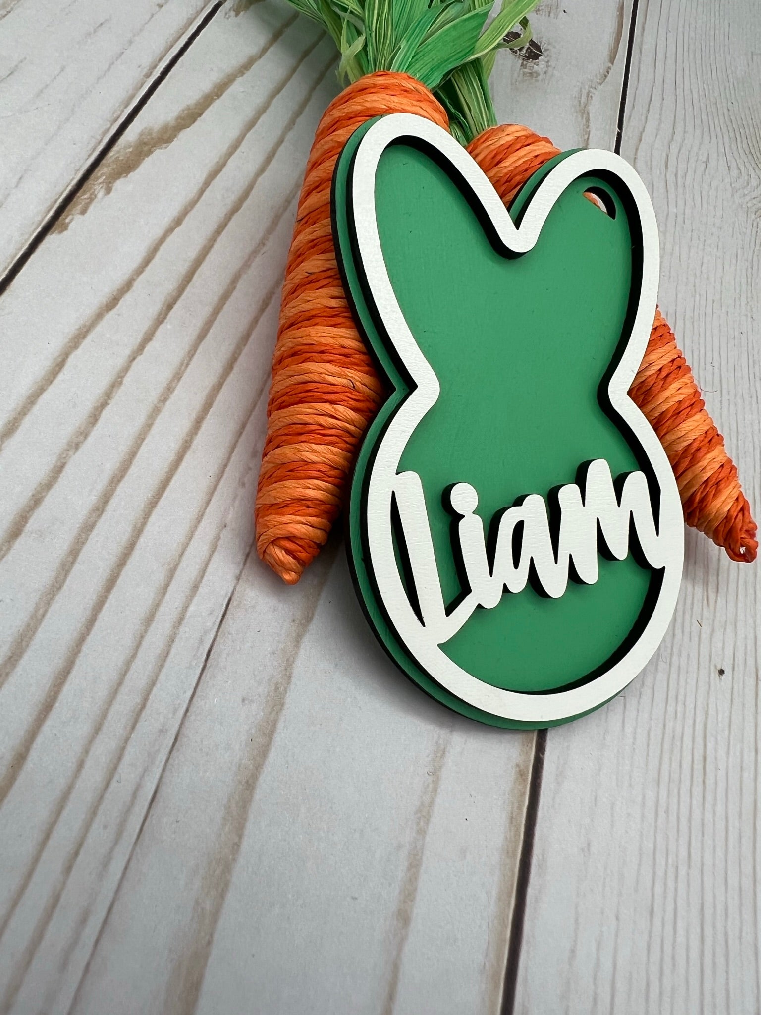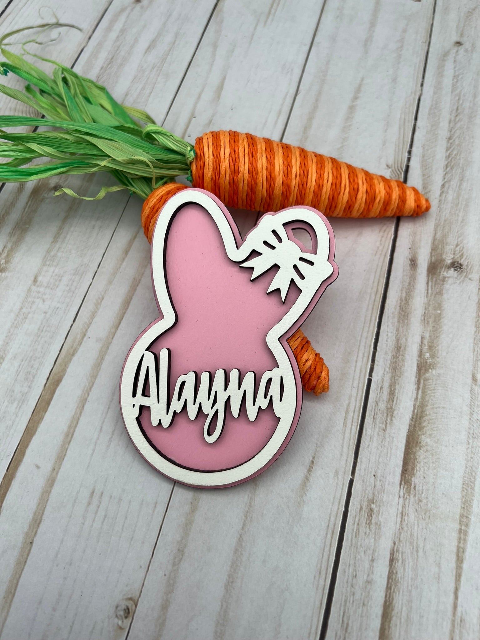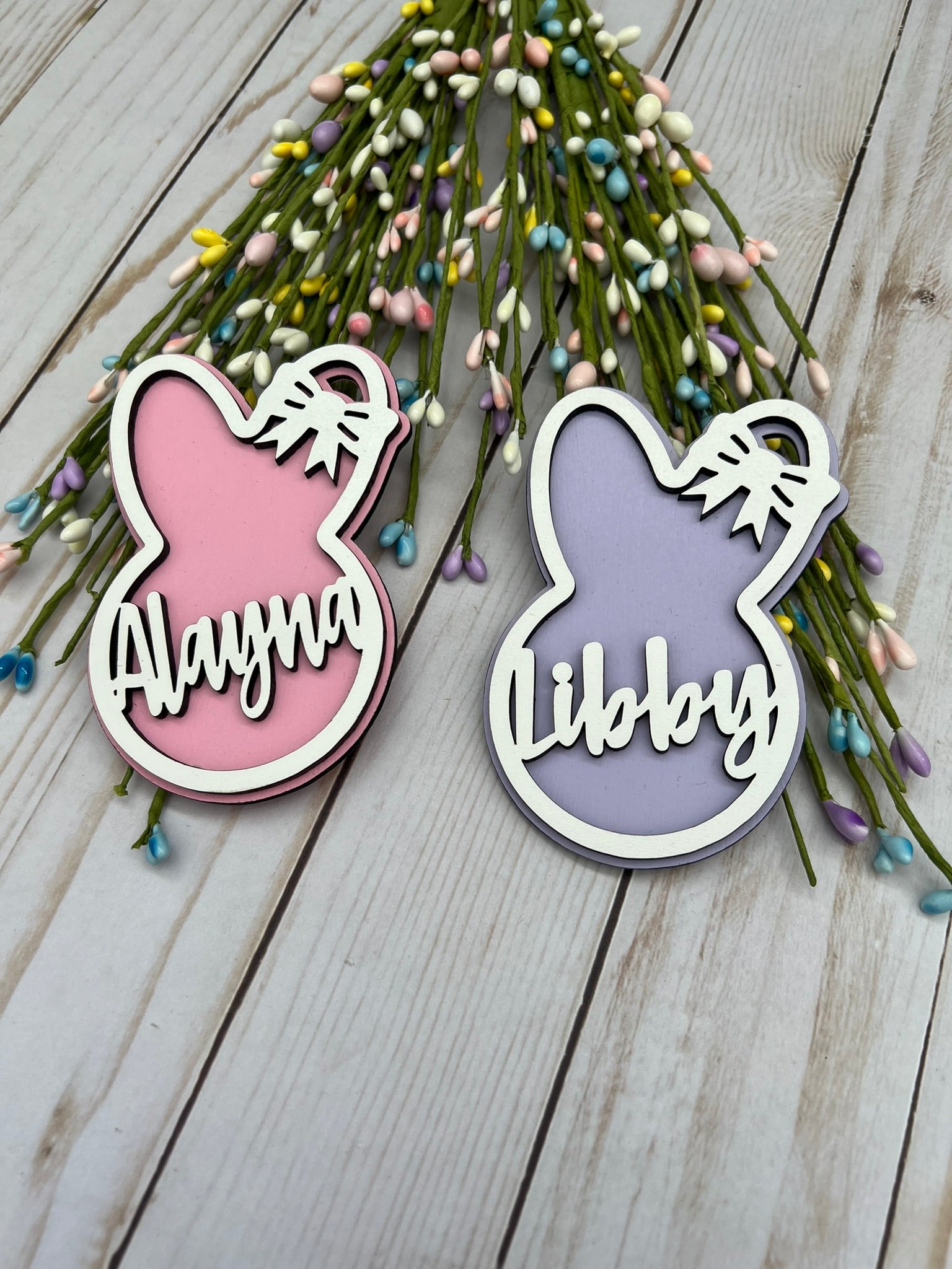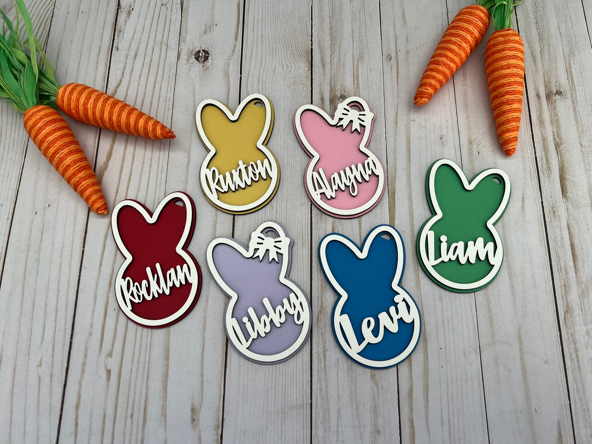 These adorable personalized bunny name tags are perfect for hanging on your Easter baskets or gift baskets and can be used for many years to come!