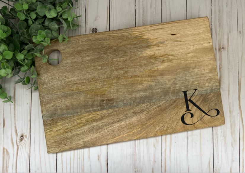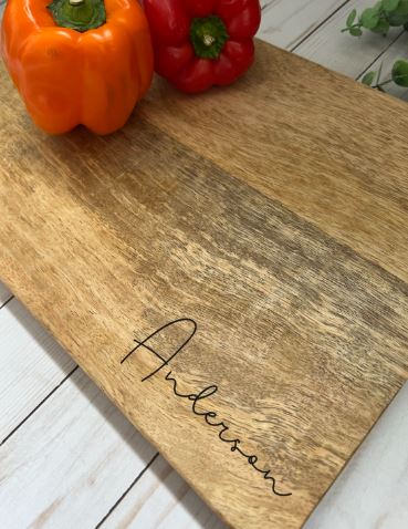 ***Please be aware that every cutting board is made from different wood and is unique! Some boards may engrave slightly lighter or darker than the photo shows.