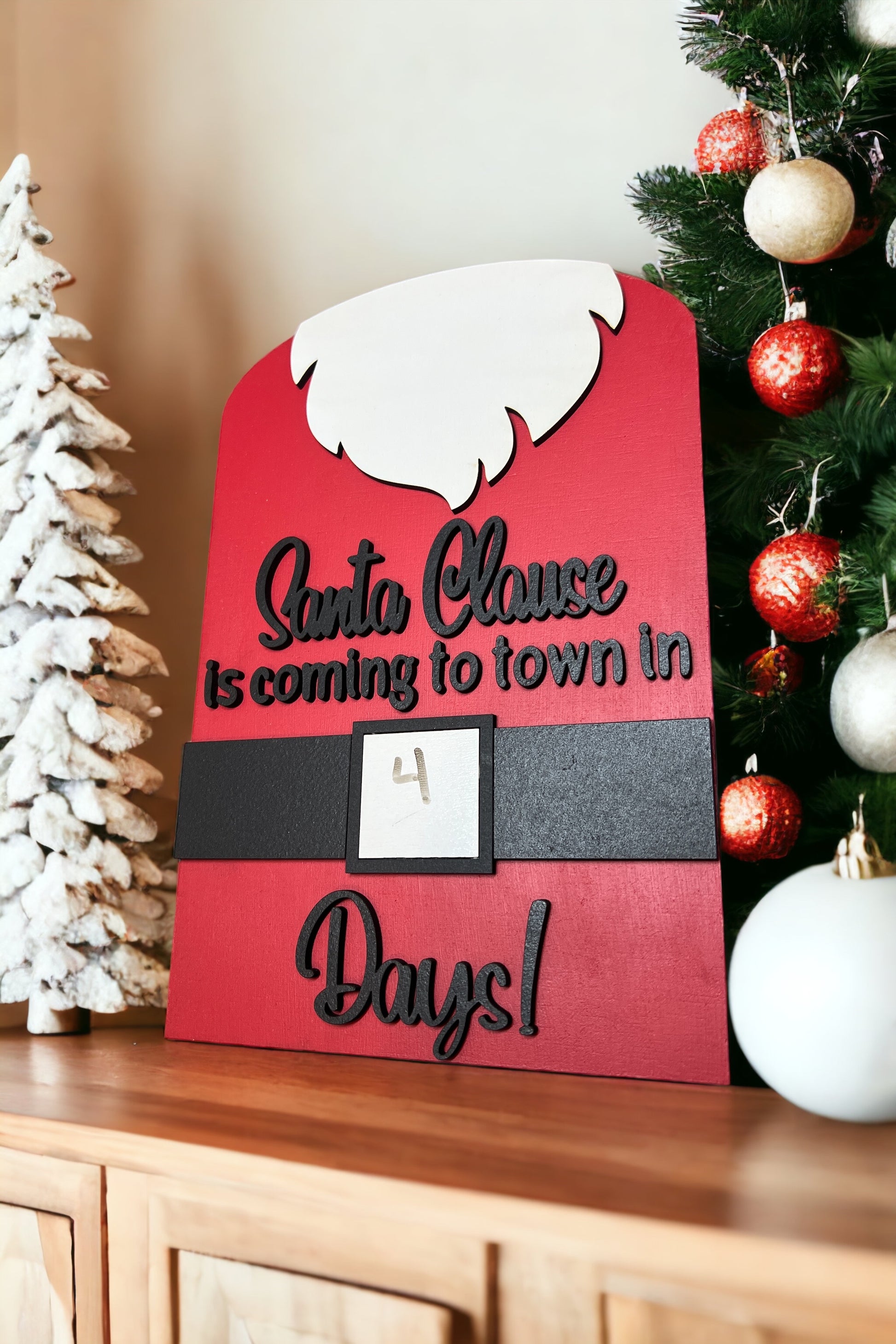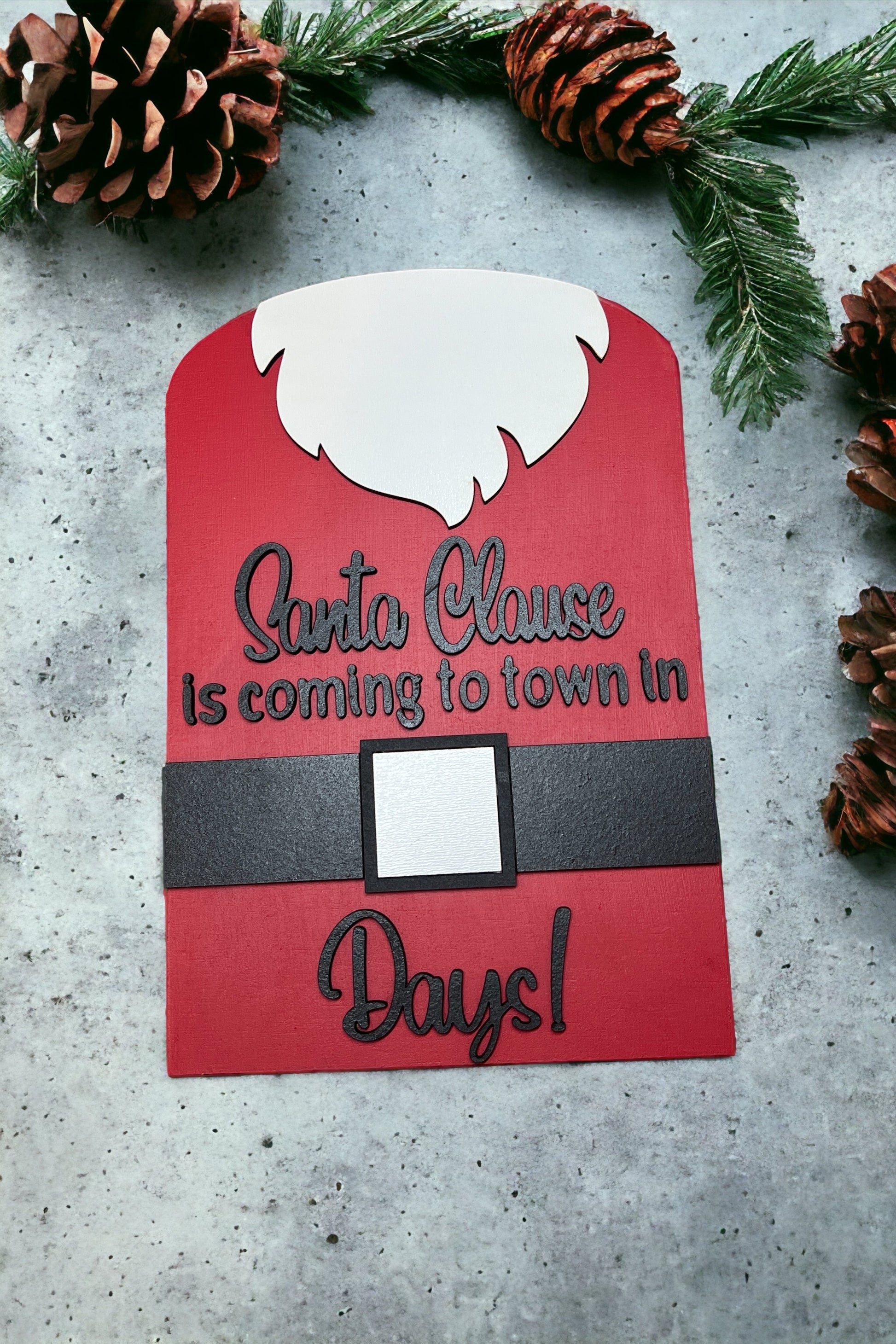 Keep track of when Santa is coming to town with this adorable sign. Easily count down the days with the dry erase boards in his belt.