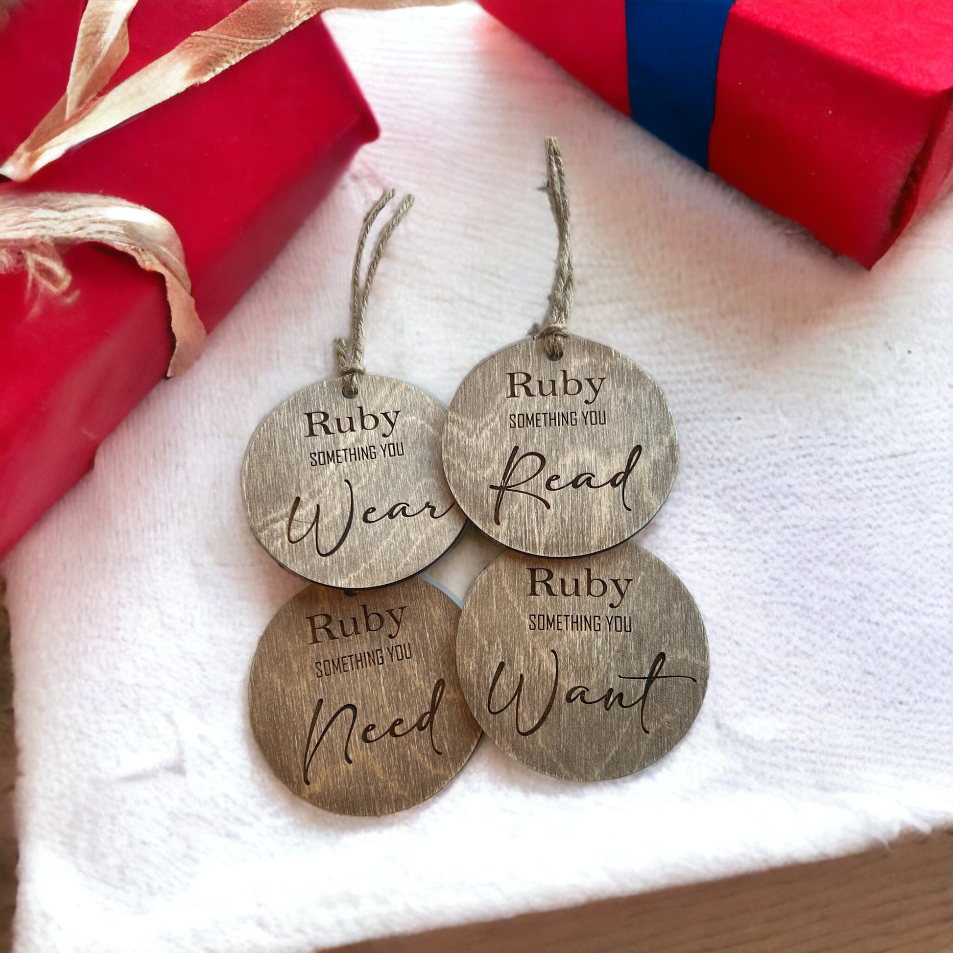 Whether it is your first child or sets for all the kids or grandchildren these matching gift tags are perfect for keeping gift giving simple and can be reused every year!