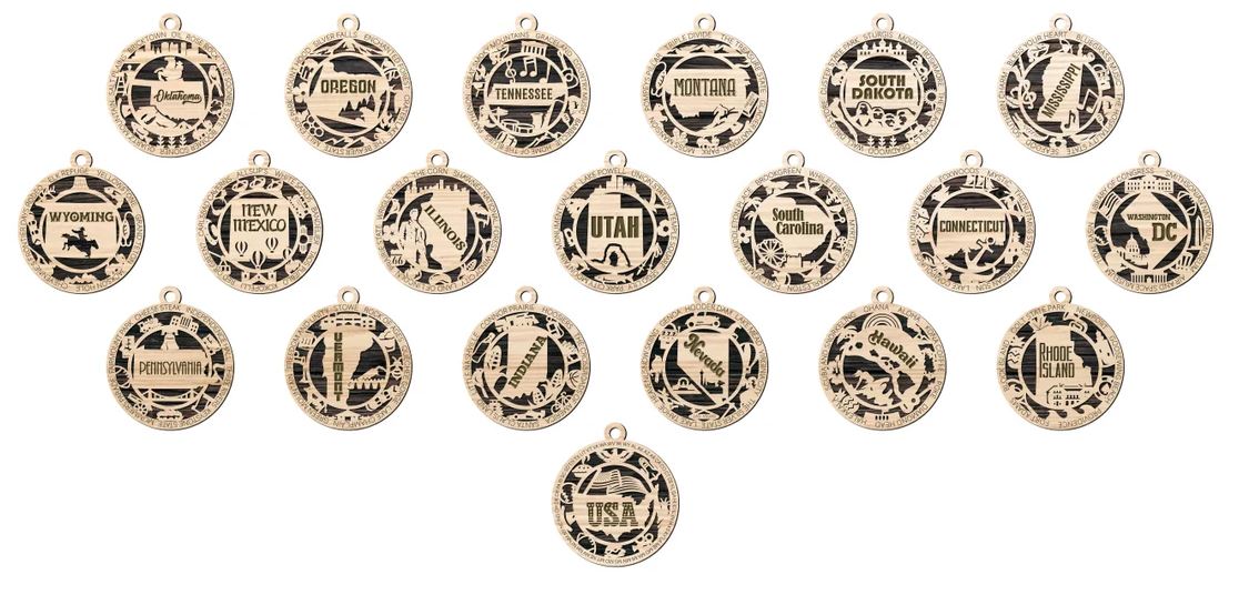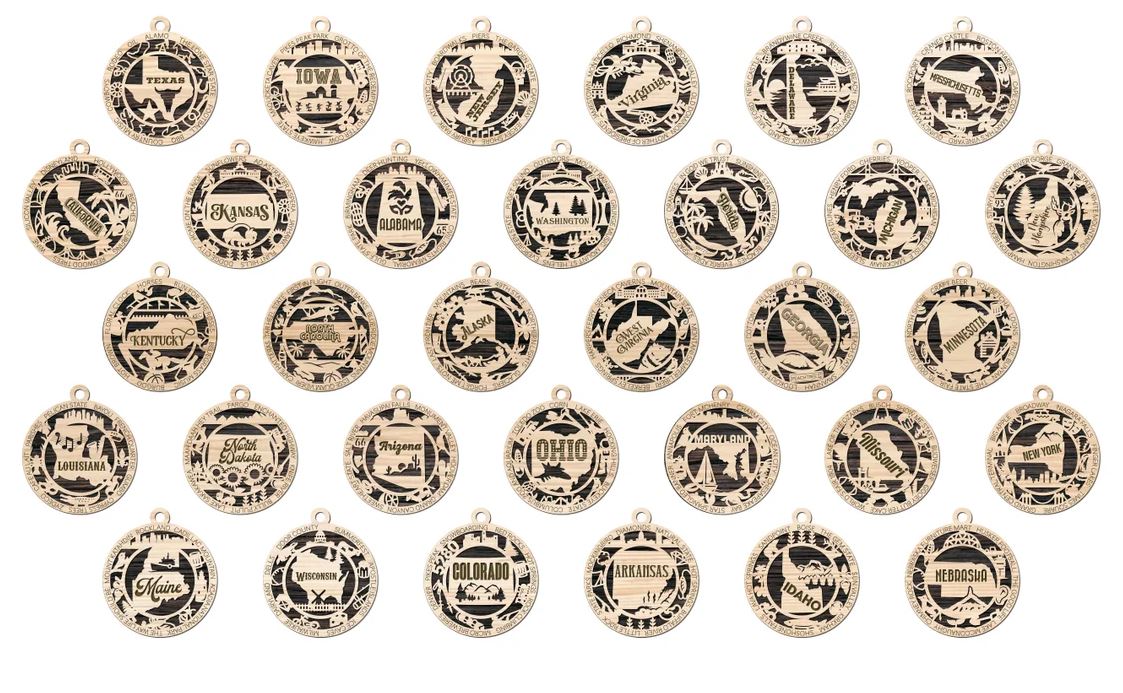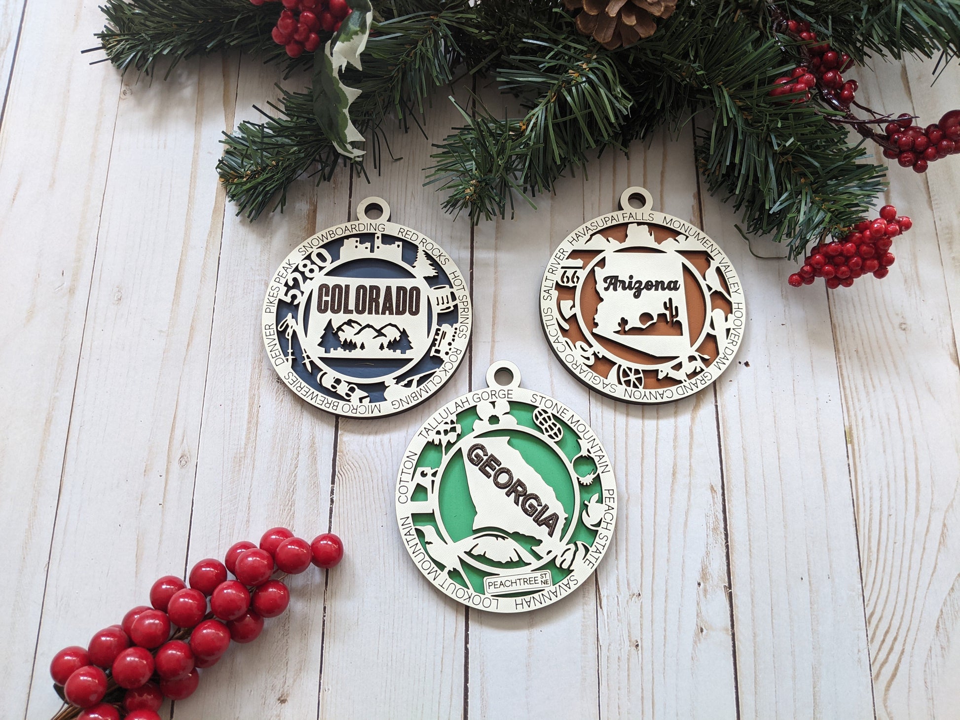 Whether documenting your travels or showing pride for your home state, these wood ornaments will make a memorable ornament to give as a gift or hang on your own tree this holiday season.