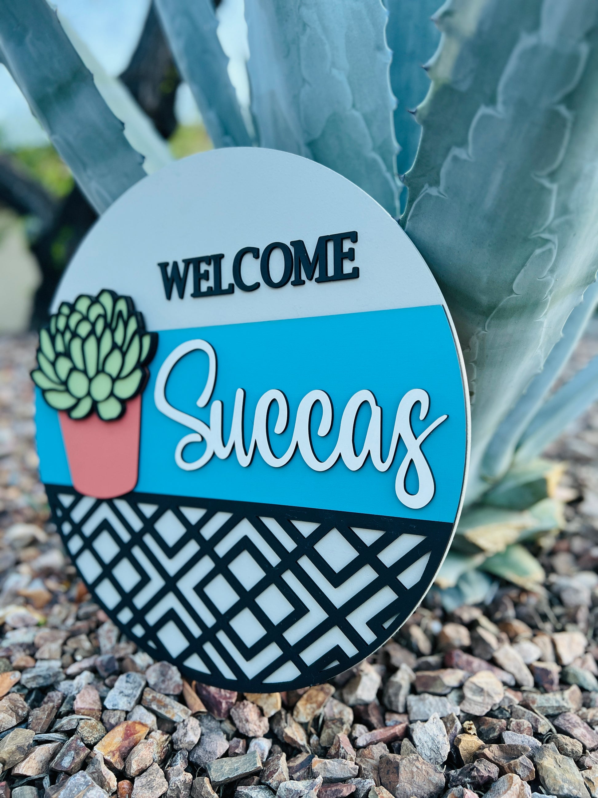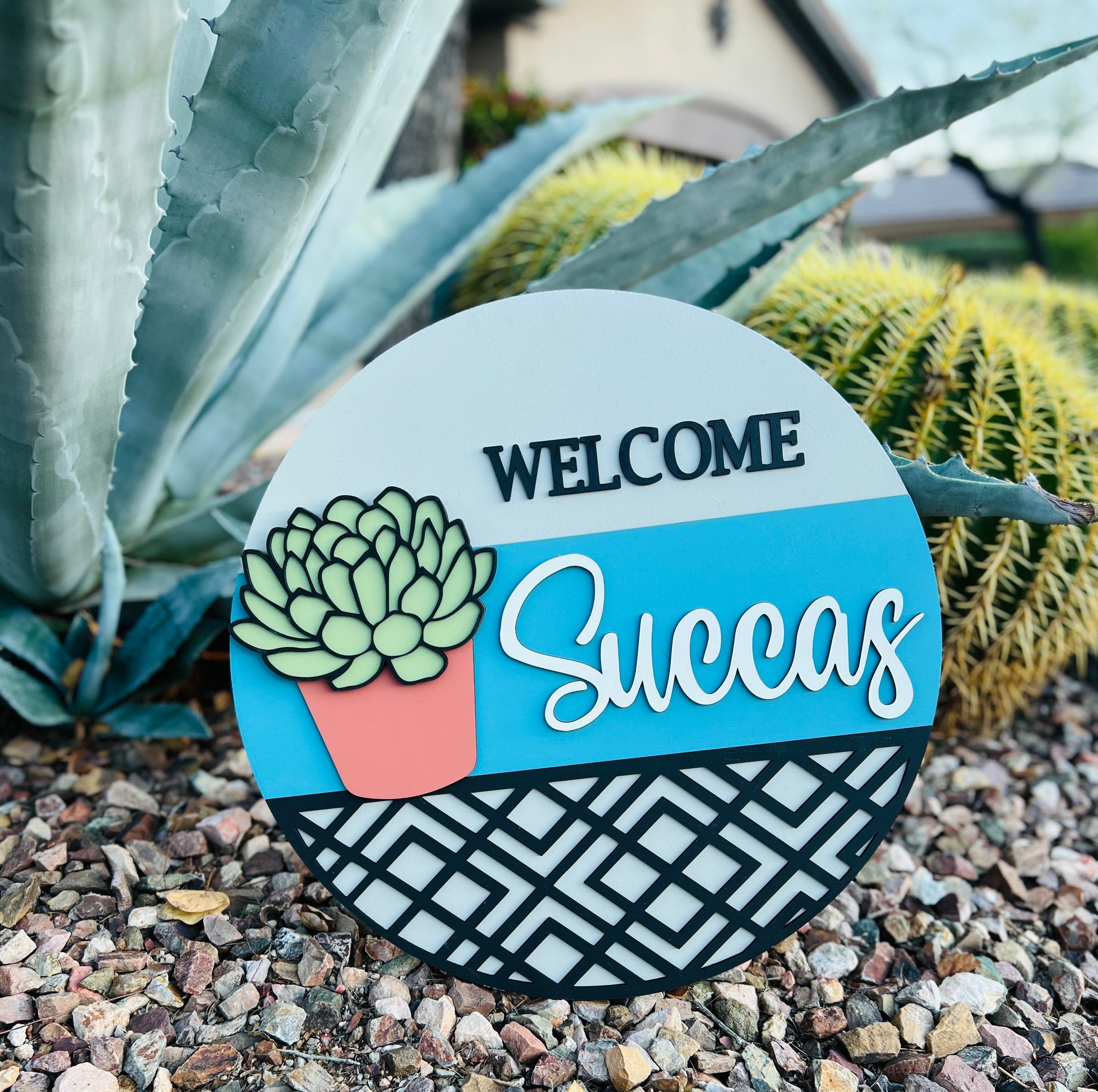 "Welcome Succas" Round Sign
